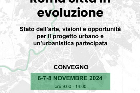 6, 7 e 8 novembre 2024 convegno ROMA CITTA’ IN EVOLUZIONE: Stato dell’arte, visioni e opportunità per il progetto urbano e un’urbanistica partecipata”, presso la Macroarea Ingegneria dell’Università degli Studi di Roma “Tor Vergata”